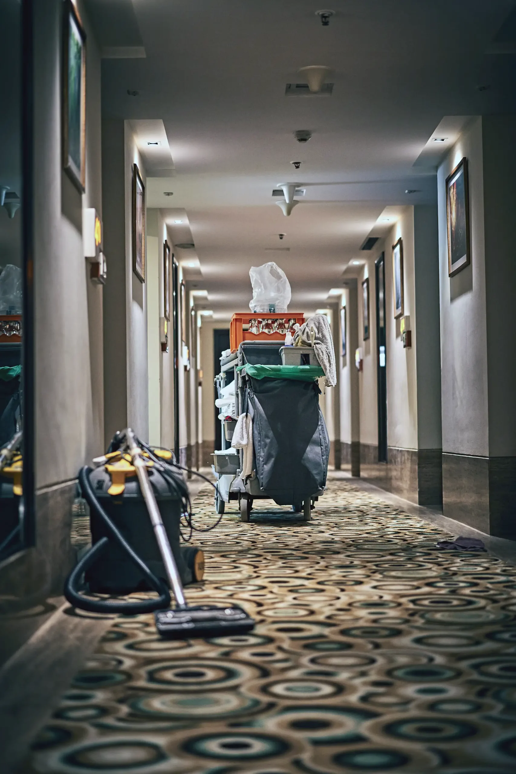 - Vloeronderhoud: stofzuigen, dweilen en tapijtreiniging van kamers en lobby’s
