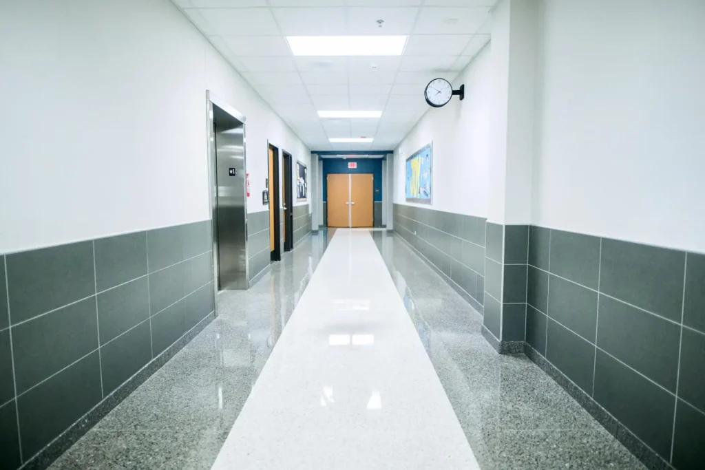 - Vloeronderhoud: stofzuigen, dweilen en tapijtreiniging van alle openbare ruimtes